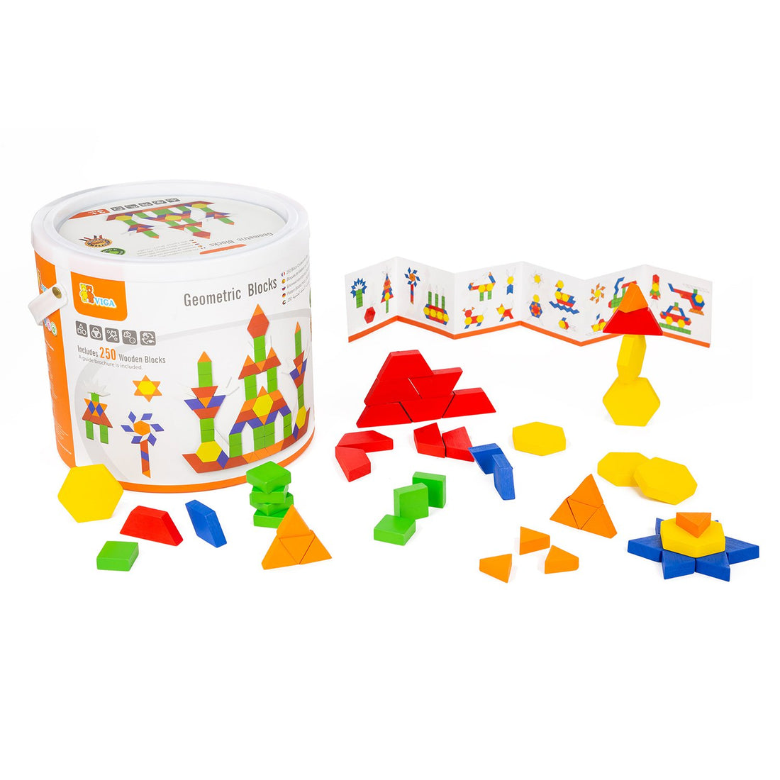 VIGA - Wooden Pattern Blocks - 250 Pcs