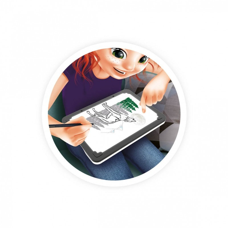 Drawing feature: Place a template on the pad, then a clean sheet of A5 paper on top. Use the LED light to trace the template – or just to light up your creation.