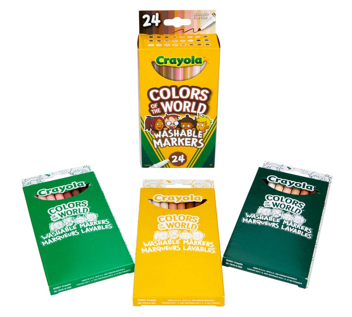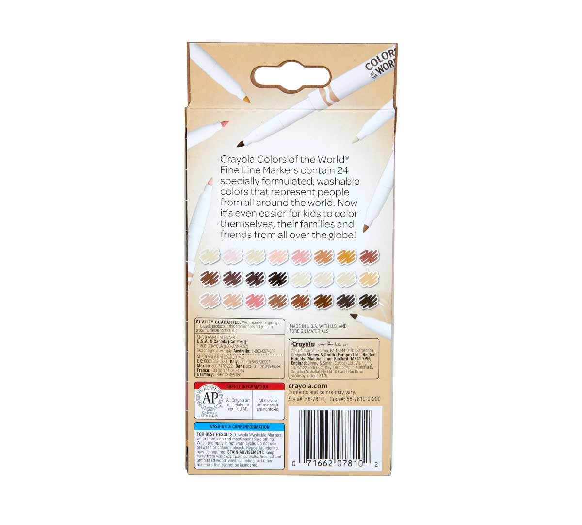 Crayola Colors of the World Fine Line Markers contain 24 specially formulated, washable colors that represent people from all around the world.