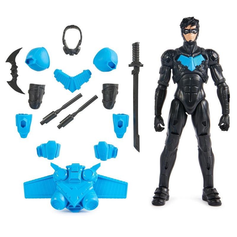 Nightwing figure with 15 armor accessories and 17 points of articulation for dynamic poses and action.