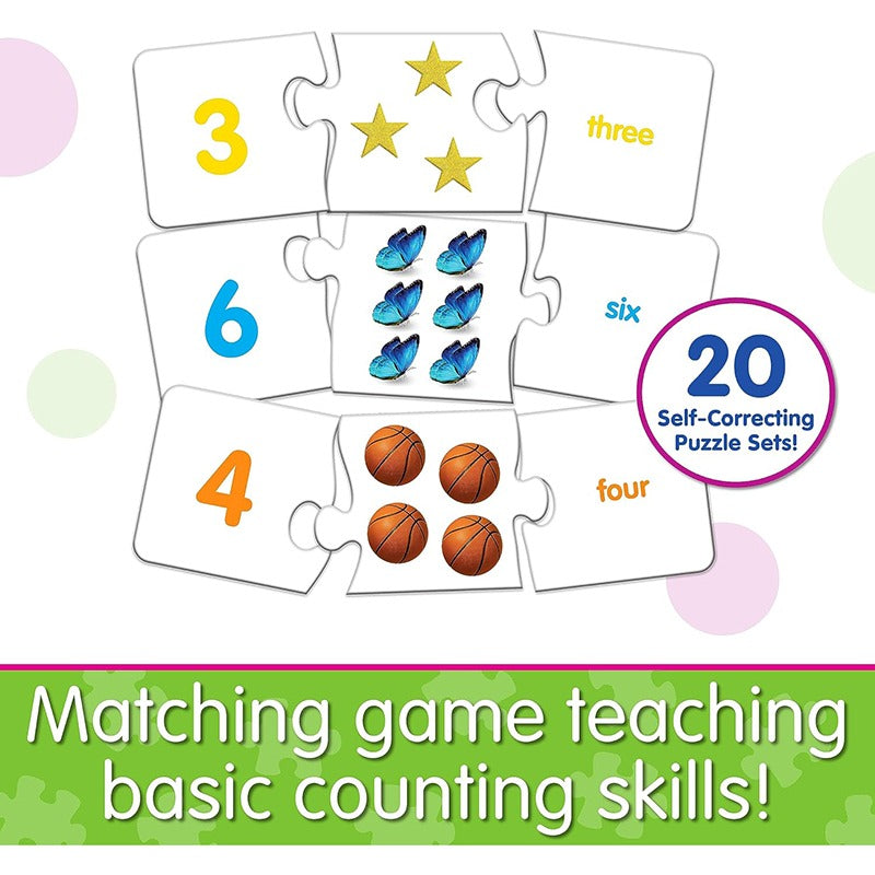 Each puzzle card contains three pieces: the number, a corresponding number of objects to count, and the number in written form.