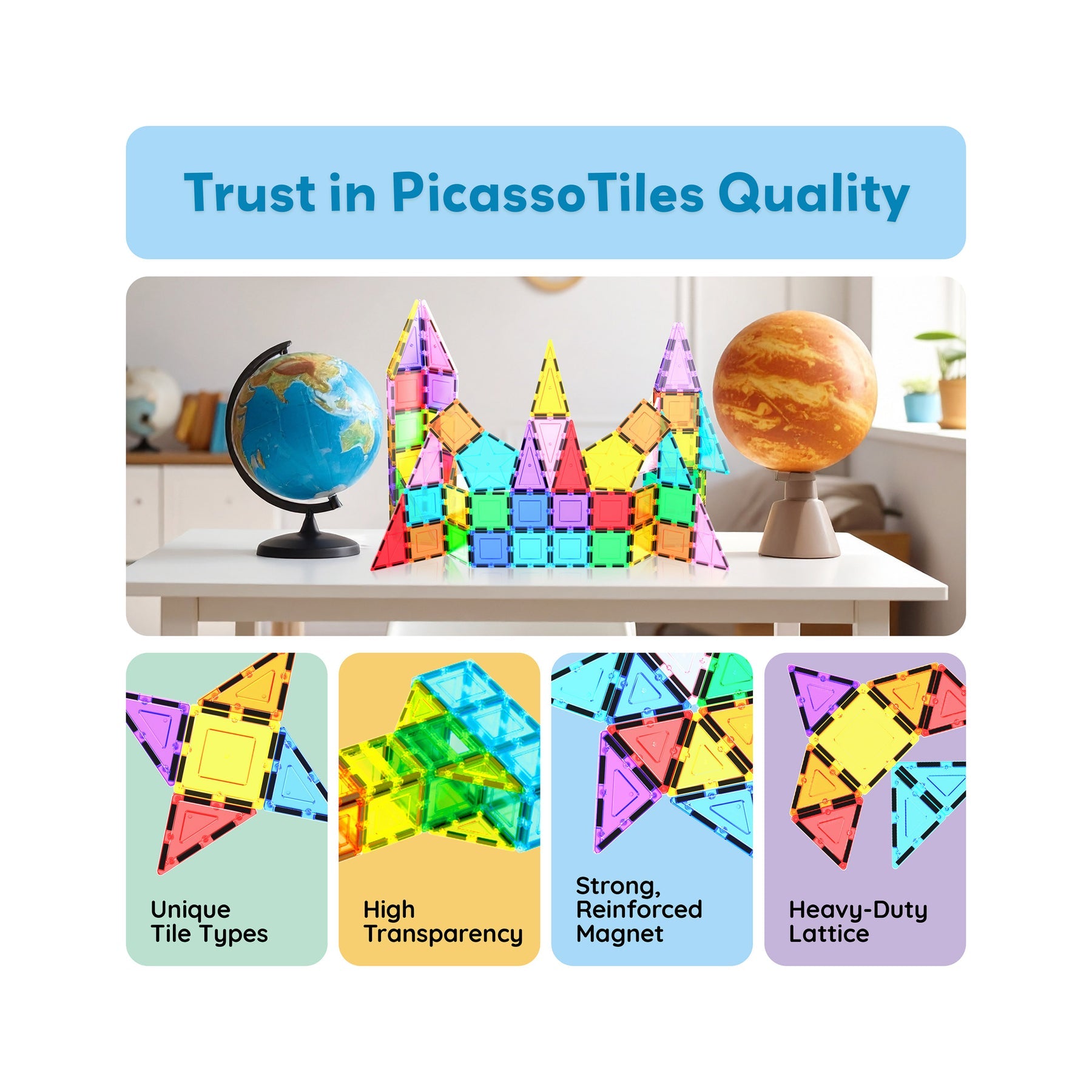 - A learning toy set that helps kids' brain development Blocks for magnetic stacking.