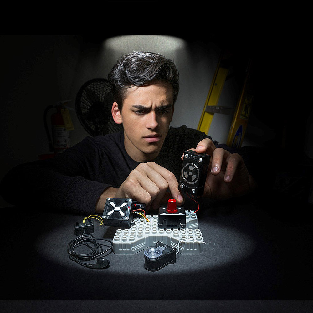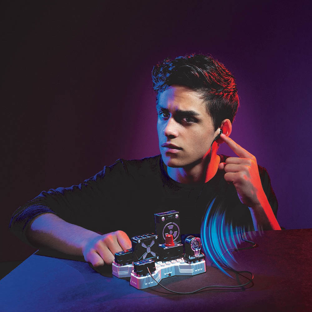 Colorful wires and springs help you build your acoustic hearing aid and learn all the theories easily.