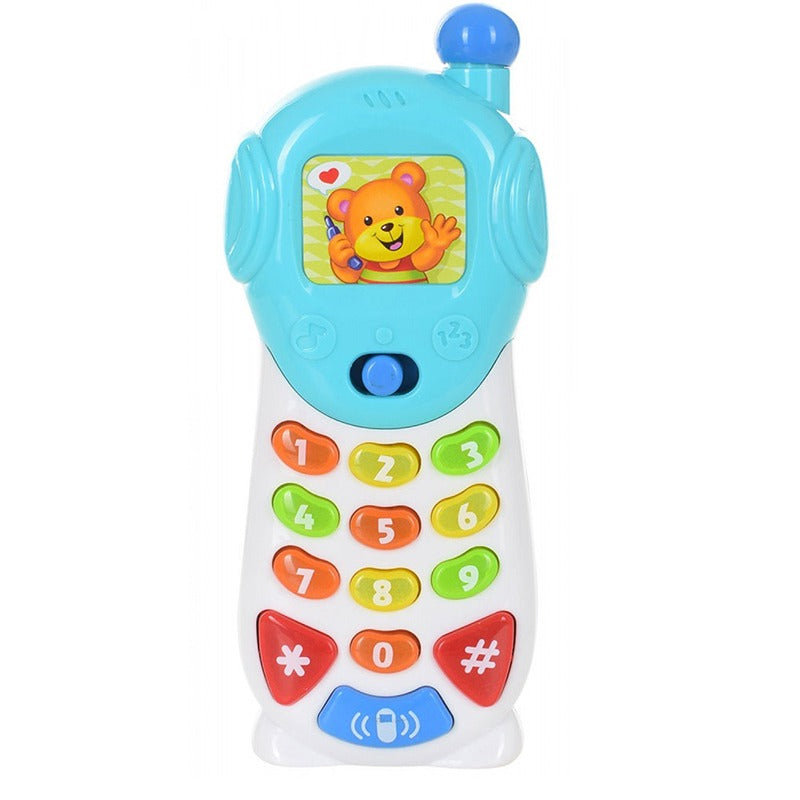 Talking mobile phone with 2 modes of play Flashing light-up number buttons Ring tone button with sound effects and fun phrases Press the antenna for more fun sounds and music.